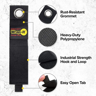 - 구성하기: 중량-DutyWrap-차고, 창고, 가게, 그리고 집, 보트, 캠핑 카 또는 RV주변에서 보관과 조직을 위한 끈을 사용하십시오. 체계적으로행동하고 체계적으로 행동해라. 이 끈들은 끈, 호스, 밧줄 등을 정리하기 위한 최고의 해결책입니다!