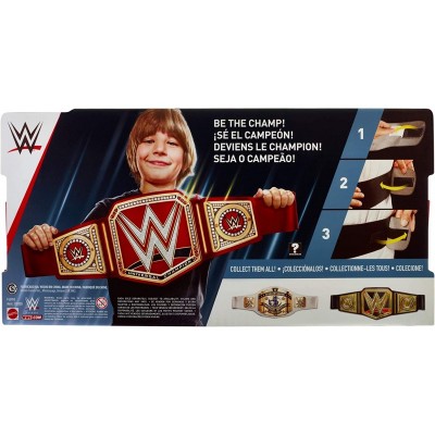 Now kids can take home the excitement of the WWE and its ultimate badge of honor -the WWE Championship! This trophy item comes with authentic styling, sleek metallic medallions, a leather-like belt and a one-time adjustable feature to fit around the waist of any child eight years or older! Each regal championship in the assortment is designed to resemble the ones worn and proudly flaunted by your favorite WWE Superstars. Choose from a wide variety of famous titles such as: WWE World Heavyweight Championship, WWE Smackdown Tag Team Championship, WWE Universal Championship, WWE Winged Eagle Championship and WWE NXT Championship. Kids will love wearing the championships that celebrate the top Superstars and honor their distinction as the very best. Strap on the large victory championship and feel like a WWE Superstar. Wave it around or fling it over your shoulders like the Superstars do in the ring and feel the thrills and power of being the best! Each sold separately, subject to availability. Colors and decorations may vary.