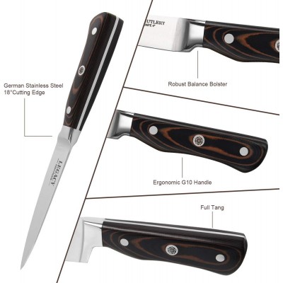 주방칼 대장장이입니다.당사의 최첨단 기술과 설비는 강철의 유연성과 경도 사이의 모순된 관계를 정확하게 균형 있게 유지합니다. 손잡이는 내구성이 뛰어난 G10 섬유 유리 복합 재료로 제작되었습니다.극한의 온도나 습도에 거의 영향을 받지 않습니다.