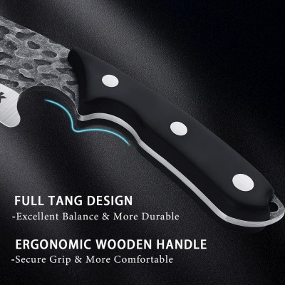 Huusk 고기 칼은 고기, 생선, 야채, 과일 등을 쉽게 슬라이스, 주사위 및 다진 것입니다. 실내 또는 실외에 상관없이 실용적인 조수입니다.