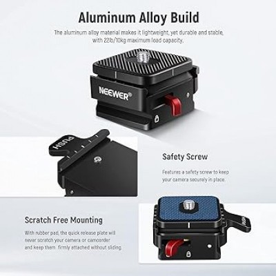 - 【알루미늄 합금 재질】 내구성이 뛰어나고 견고한 퀵 릴리스 플레이트는 알루미늄 합금으로 제작되었으며 최대 하중 용량은 22lbs/10kg입니다. 카메라 긁힘을 방지하기 위해 플레이트 상단에 고무 패드 디자인