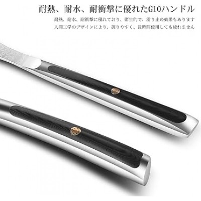 - 튼튼한 항공 등급 재질: 핸들은 G10 재질로 만들어졌습니다. G10은 유리 섬유 천과 에폭시 수지의 화합물로, 원래 깨지지 않고 상당한 힘을 견딜 수 있는 항공기 재료로 개발되었습니다. 나무 손잡이에 비해 내열성, 내수성, 내충격성이 우수하고 위생적이며 미끄럼 방지가 됩니다. 손잡이의 핸드메이드 매화무늬를 손잡이에 상감하여 패셔너블하고 유니크한 스타일을