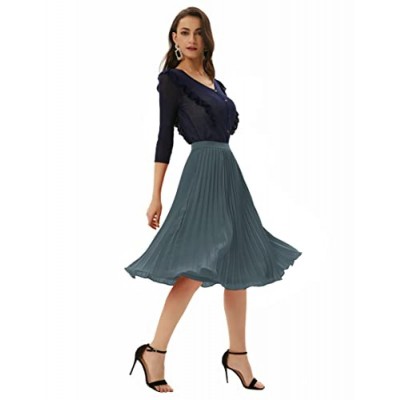 GRACE KARIN 여성 고탄성 허리 플리츠 쉬폰 스커트 미디 스윙 A 라인 스커트 요약정보 및 구매