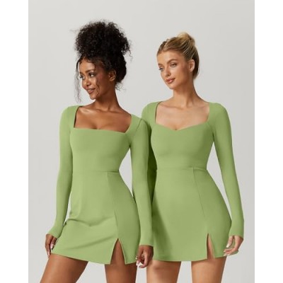 QINSEN 여성용 Sweettheart Neckline 긴 소매 드레스 사이드 슬릿 스트레치 플레어 미니 드레스상품설명 - 나일론 75%, 엘라스테인 25%