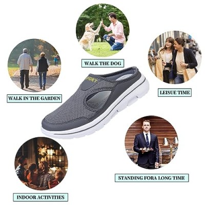 • Iwenpant 여성용 및 남성용 나막신 뮬 아치 지원 정원 신발 슬립온 야외 니트 메쉬 슬리퍼 발바닥 근막염 발 안창이 있는 경량 통기성 운동화 (+0원)