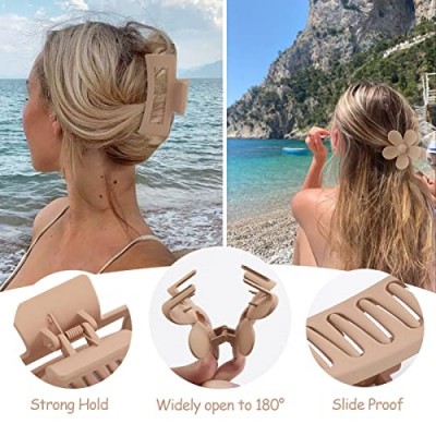- 패션 디자인: 이 머리 발톱 클립은 직사각형과 꽃무늬의 두 가지 모양으로 매우 귀엽습니다. 크림, 베이지, 다크 브라운, 블랙 등 다양한 색상이 있으며 어떤 의상에도 잘 어울릴 수 있습니다! 다양한 경우에 대한 요구 사항을 충족하십시오.