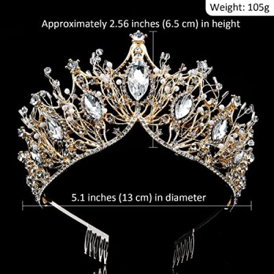 - 크기 - 럭셔리 신부 왕관은 금색입니다. 높이 약 6.5cm(2.56인치), 직경 14cm(5.1인치)입니다. 모든 연령대의 여성과 십대 소녀에게 완벽하게 적합합니다. 이 왕관은 성인 여성의 전통적인 왕관으로 적합합니다.