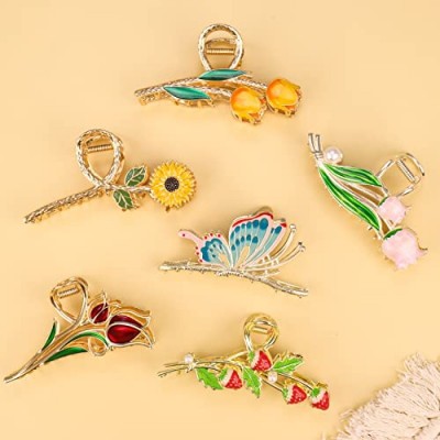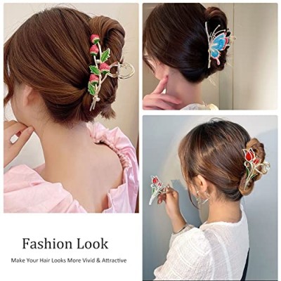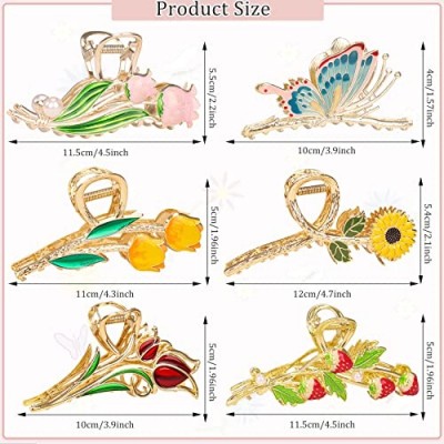6 Pcs 대형 금속 꽃 발톱 클립 튤립 머리 발톱 클립 귀여운 딸기 헤어 클립 강한 홀드 금속 클립 여자와 여자를위한 길고 두꺼운 곱슬 큰 패션 헤어 클램프에 대한 나비 머리 턱 클립상품설명 - 패키지 포함: 6개 금속 머리 발톱 클립, 패키지에 6가지 다른 디자인 모양이 포함되어 있어 일상 사용 및 특별 행사에 대한 다양한 요구 사항을 충족하기에 충분하며 특히 봄과 여름 착용에 적합합니다.