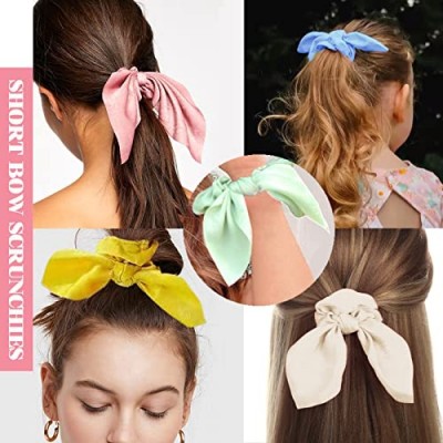 - 귀여운 헤어 액세서리 - 매력적이고 귀여운 긴/짧은 토끼 귀 리본 디자인의 리본 매듭 탄성 헤어 밴드, 다양한 선명한 색상 사용 가능, 헤어 패션 트렌드로 주목을 받고 팬시 & 포멀 헤어스타일에 대한 모든 요구를 충족합니다.