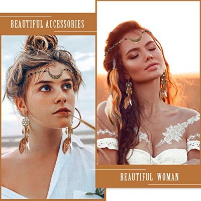 5 팩 깃털 헤어 클립 Boho 헤드 문 체인 크리스탈 빈티지 이마 쥬얼리 마녀 헤드 피스 파티 할로윈 여성을위한 긴 술 깃털 귀걸이 의상과 히피 빗 (혼합 색상)상품설명 - 패키지 포함 사항: 빈티지 달 머리 체인 1개, 긴 태슬 깃털 귀걸이 1쌍, 깃털 클립 빗이 달린 헤어 익스텐션 3개, 완전한 보호 스타일 장식품, 충분한 양, 사려 깊은 조합, 일상 생활에서 착용하고 장식하기에 충분합니다.