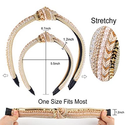 - ️【한 사이즈의 넓은 매듭 머리띠가 가장 잘 맞습니다】 여성용 순수 수제 니트 비즈 머리띠는 패브릭이 앞쪽으로 교차하여 사랑스러운 매듭 스타일을 만들어 독창적인 아름다움을 선사합니다. 각 헤드밴드의 높이는 약 6.7인치, 너비는 5.5인치입니다. 신축성이 좋은 검정색 플라스틱 헤드밴드로 편안한 착용이 가능합니다. 유연한 크기는 다양한 사람들의 요구를 충족시킵니다. 여성, 소녀, 청소년을 위한 이상적인 머리띠입니다.