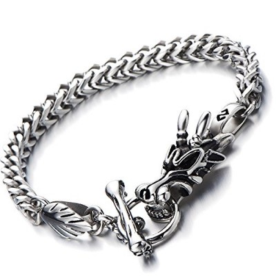 COOLSTEELANDBEYOND Mens 바이커 스테인레스 스틸 드래곤 커브 체인 팔찌 토글 걸쇠 고딕 스타일 요약정보 및 구매
