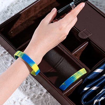 - 사양: 이 파란색 및 노란색 실리콘 팔찌에는 "희망, 믿음, 사랑" 및 리본이 양각으로 새겨져 있습니다. 이 팔찌는 둘레 8 1/4인치를 보고 느낄 수 있는 100% 고품질 실리콘으로 만들어졌습니다. 파란색과 노란색은 우크라이나 국기의 색상이며 이 나라에 일어나고 있는 역경에 대한 인식을 높이는 데 도움이 됩니다. 당사의 파란색 및 노란색 리본 팔찌는 우크라이나 분쟁 및 다운증후군의 영향을 받는 사람들을 돕는 데 주력하는 조직을 위한 기부금 모금에 적합합니다.