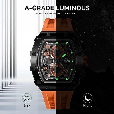 Tsar Bomba 남성용 시계 방수 50M 럭셔리 토노 남성용 아날로그 시계 비즈니스 작업 시계 다이버 손목 시계 복제 시계 크로노 그래프 달력 날짜 남성용 드레스 대형 사각형 얼굴     상품설명 - 수입됨
