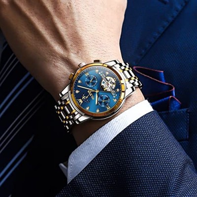 - 【남성용 시계】: 자동 시계, 고경도 코팅 유리 거울 표면이 긁힘과 파손을 방지합니다. 기계식 무브먼트 배터리 필요 없음, 스켈레톤 뚜르비옹 디자인, 읽기 쉬운 로마 숫자 눈금, 투톤 스테인리스 스틸 팔찌(조절 가능, 도구 포함), 시계의 품질은 안정적이며 최대 10년까지 지속될 수 있습니다. 자동 와인딩 시계는 많은 고객들로부터 칭찬과 추구를 받았습니다.