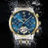OLEVS 자동 시계(배터리 불필요) 남성용 손목 시계 자동 태엽 기계식 시계 패션 클래식 뚜르비옹 스켈레톤 시계 블랙 블루 그린 페이스, 조절 가능한 팔찌(선물 도구)상품설명 - 수입됨