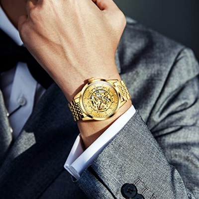 - [럭셔리하고 대담한 디자인] 정밀한 오토매틱 무브먼트, 사각 다이아몬드 마커, 골드 스테인리스 스틸 밴드, 독특한 스켈레톤 다이얼이 시대를 초월한 미학으로 착용 경험을 선사합니다. 파티나 이사회에서 주목을 끌지 않고도 눈에 띄는 시계입니다.