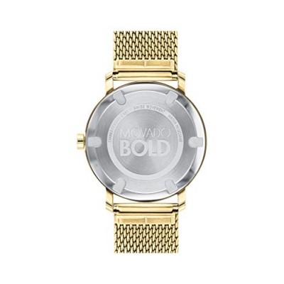 • Movado 남성용 볼드 에볼루션 페일 옐로우 골드 이온 도금 스틸 케이스 및 메쉬 팔찌, 옐로우 골드 (+0원)