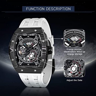 TSAR BOMBA 남성용 시계 자동 기계식 남성용 아날로그 시계 해골 손목 시계 토노 시계 복제 선물 빅 페이스 다이얼 빛나는 사파이어 크리스탈 케이스 FKM 고무 스트랩이 포함된 멋진 시계     상품설명 - 수입됨