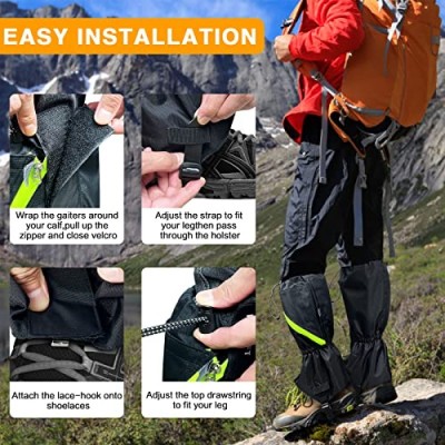 MAGGIFT 다리 각반, 하이킹용 각반 걷기, 사냥, 등산 및 스노우슈잉을 위한 방수 및 조절 가능한 스노우 부츠 각반     상품설명 - 다리를 건조하고 깨끗하게 유지하세요: MAGGIFT 다리 각반은 거친 환경을 견딜 수 있도록 설계되어 물, 먼지, 자갈 및 눈으로부터 보호합니다. 깊은 눈 속을 하이킹하든 악천후에 직면하든 이 각반은 편안함과 건조함을 유지해 줍니다. 하이킹, 등산, 달리기, 스키 등에 적합합니다!