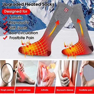 GEMSTONEGO 가열 양말 남성 여성을위한 전기 충전식 배터리 구동 가열 양말, 야외 스포츠 등산 하이킹 사냥 스키 발 따뜻하게 양말을위한 겨울 가열 열 절연 양말     상품설명 - 3단계 온도 설정: 온도를 쉽게 조절할 수 있는 3개의 열 설정 컨트롤러가 있는 전기 충전식 가열 양말. 따뜻한 겨울 가열 양말은 다양한 요구를 충족할 수 있습니다. GEMSTONGE 가열 양말은 가장 낮은 설정에서 완전히 충전된 후 최대 6.5시간까지 작동할 수 있습니다.4.5- 중간 설정에서 5시간. 높은 설정에서 3~3.5시간. 남성과 여성에게 따뜻한 겨울을 선사하는 전기 가열 양말.