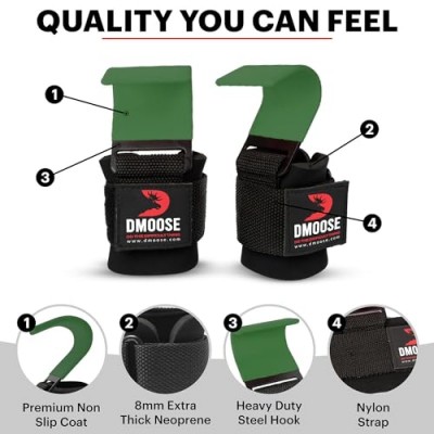 DMoose 역도 후크(쌍), 남성용 및 여성용 핸드 그립 지원 손목 스트랩, 8mm 두꺼운 패딩 네오프렌, 데드리프트, 파워리프팅, 풀업 바, 리프트업, 어깨 으쓱상품설명 - 향상된 장기 안정성 – 기존의 리프팅 후크는 무게와 사용으로 인해 찢어지고 부서지기 시작합니다. 그러나 우리의 리프팅 손목 후크는 매우 강한 스트랩, 이중 스티칭, 튼튼한 견고한 강철 후크 및 매우 두꺼운 네오프렌 소재를 자랑하여 스트레스, 마모 및 손상을 줄입니다. 우리의 리프팅 후크는 더 높은 무게에서도 부러지지 않습니다.