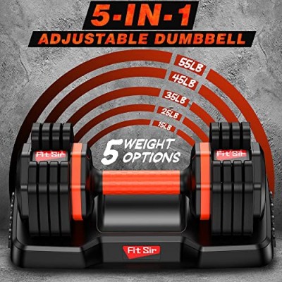 단일 조정 가능한 덤벨 55LB, 핏 선생님 웨이트 덤벨 세트 15~55lb 증가, 트레이 및 미끄럼 방지 핸들 포함 남성 여성 전신 운동 운동 및 피트니스 근력 훈련 홈 체육관     상품설명 - 【1초 무게 변경, 5단계 무게 조정】: Fit Sir 10년 조정 가능한 무게 덤벨 세트, 미국 특허, 조정하기 쉽고 핸들을 비틀어 한 손으로 1초 안에 무게 선택을 변경합니다. 조정 가능한 덤벨은 15, 25, 35, 45 및 55파운드의 무게로 정밀하게 조정될 수 있습니다. 그것으로 당신은 집이나 사무실에서 언제든지 운동과 피트니스를 할 수 있습니다