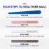 - 3, 4단계: 3단계 - 흰색 #3 젤 네일 파일을 사용하여 손톱을 윤기 있고 윤기나게 준비하고 컨디셔닝합니다. 4단계 – 회색 네일 전문 파일을 사용하여 눈부신 광택을 연출하세요. 매니큐어를 바르지 않고도 아름다운 손톱을 연출할 수 있는 젤 네일 키트입니다.