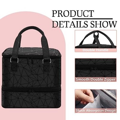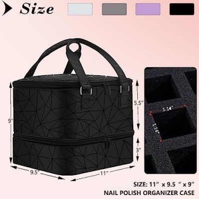 FCQQYWZ 매니큐어 정리함 케이스 - 42개 이상의 병(15ml/0.5 fl.oz) 및 네일 램프 1개 수용, 업그레이드된 이중층 매니큐어 운반 케이스 손잡이가 있는 매니큐어 보관 가방(검은색)상품설명 - 1. 『대용량』- 크기: 11" x 9.5" x 9". 이중 레이어 매니큐어 정리함은 일반 네일 램프를 포함한 모든 매니큐어 및 매니큐어 액세서리를 담을 수 있을 만큼 충분히 큽니다.