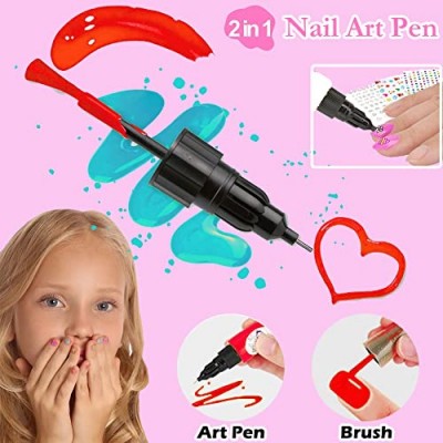 - 【업그레이드된 소녀용 매니큐어 세트 】2-in-1 네일 펜과 소형 네일 드라이어로 네일 아트 키트를 더욱 재미있고 쉽게 만들어 보세요. 당사의 매니큐어 펜에는 브러쉬 페인트, 펜촉 그리기의 2가지 기능이 있어 네일 아트 디자인에 대한 모든 요구 사항을 충족합니다. 펜은 당신의 상상 속 디자인으로 그림을 그리고, 브러싱하고, 손톱에 점을 찍을 수 있습니다. 미니 네일 드라이어는 작동이 간편하여 손톱을 빠르게 건조시킬 뿐만 아니라 친구, 가족 휴가 때 손톱 장식에 재미를 더해줍니다. 8~10세 여아를 위한 훌륭한 장난감.