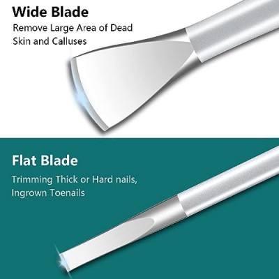 - 【훌륭한 솜씨】 가장자리를 두 번 열면 전문 칼이 더 얇고 날카로워집니다. 스크럽 핸들은 잡기 쉽고 제어하기 쉬운 인체 공학적 디자인을 채택하고 발 죽은 피부, 각질 및 굳은 살을 신속하게 제거하고 발을 깨끗하고 편안하게 만듭니다. 발을 잘 관리하는 데 이상적입니다.