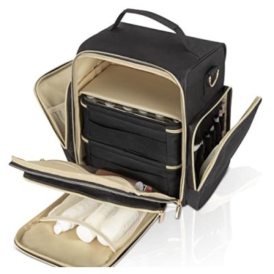- 탈착식 매니큐어 용기 가방 2개 - 각 탈착식 케이스에는 최대 24병을 보관할 수 있습니다. 컨테이너 백에는 매니큐어가 잘 보이도록 상단이 투명하고 내구성이 뛰어난 금색 지퍼가 있어 모든 것을 안전하게 보관할 수 있습니다. 이 컨테이너 백에는 여행 편의를 위해 튼튼한 손잡이도 있습니다.