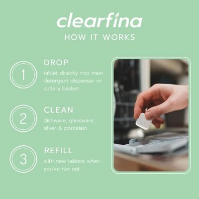 - 사용하기 쉬움: 하나의 정제를 주요 세제 디스펜서 또는 수저 바구니에 직접 떨어뜨리고 식기류, 유리 제품, 은제품 및 도자기에 대한 입증된 성능을 확인하십시오.