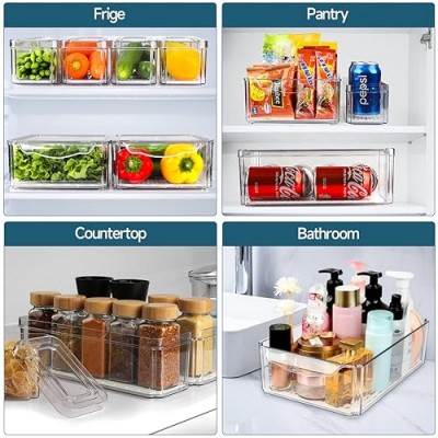 NISILIN 14 팩 냉장고 정리함 및 보관 - 뚜껑이 있는 냉장고 정리함, BPA 없는 냉장고 정리함, 냉장고용 과일 보관 용기, 야채, 식품, 음료, 시리얼, 투명상품설명 - ????14개 팩 냉장고 정리함 및 보관함: 쌓을 수 있는 수납함으로 냉장고를 깔끔하고 정돈된 상태로 유지하세요. 명확한 디자인으로 쉽게 눈에 띄고 필요한 것을 빠르게 찾을 수 있으며 과일, 야채에 적합합니다. 냉장고, 주방, 식료품 저장실 조직에 이상적인 선택입니다.