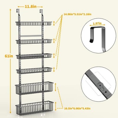 소재: 스테인레스 스틸 색상: 6티어 블랙 특징: 방수, 도어 보관, 매트 블랙, 조절 가능, 녹 방지, 욕실 및 샤워 제품 크기: 61"D x 11.8"W x 6.06"H 마감 유형: 스테인레스 스틸 장착 유형: 문 위에 걸려있는 제품의 권장 용도: 음식 포함된 구성 요소: 문 정리함 무게: 2파운드 브랜드: Moforoco 스타일: 현대의 제조사: Moforoco 원산지: 중국 아이템 모델번호: 식품 저장실 조직 및 보관 |