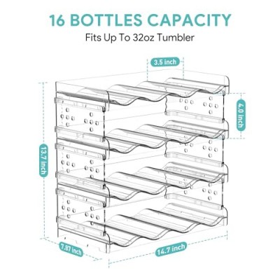 4단 물병 정리함 - 16병, 캐비닛, 조리대, 식료품 저장실 및 냉장고용 쌓을 수 있는 컵 정리함, 와인 및 음료병용 독립형 주방 텀블러 보관 홀더, 투명 플라스틱     상품설명 - [32온스 병/컵 보관] Areforic 물병 정리함은 셰이커 병, 커피 텀블러, 스포츠 컵, 단열 병, 여행용 머그, 젖병, 탄산음료 병 및 주스 병과 같은 다양한 병 크기(최대 32온스에 적합)를 정리하도록 만들어졌습니다. .