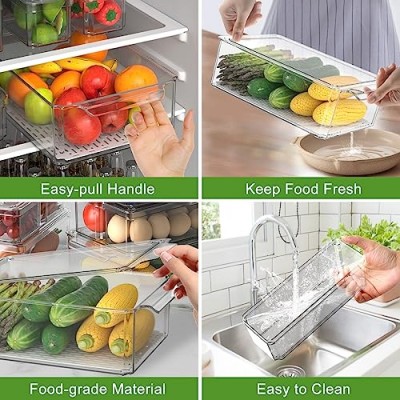 - 【내구성이 있고 냉동실에 안전한 식품 보관 용기】내구성이 뛰어난 식품 등급 PET 소재로 제작된 이 냉장고 정리함은 BPA가 없으며 얼룩과 먼지에 강합니다. 투명도가 높은 디자인의 투명한 냉장고 정리함을 사용하면 보관 중인 물건을 쉽게 보고 찾을 수 있습니다. 야채와 과일을 신선하고 눈에 띄게 유지하면서 필요합니다.