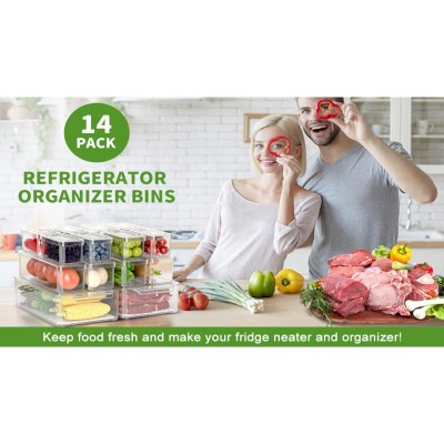 BOICHU 냉장고 정리함 및 보관 - 뚜껑이 있는 투명 냉장고 정리함 14개, 쌓을 수 있는 3개 크기의 냉장고 정리함, 냉장고용 과일 용기, 계란 포도 토마토 등을 신선하게 유지     상품설명 - [냉장고 정리함 및 보관을 위한 훌륭한 가치] 뚜껑이 있는 투명 냉장고 정리함 14개 팩, 냉장고 정리함, 주방, 식료품 저장실 정리함 및 보관에 이상적인 선택입니다. 이 쌓을 수 있는 냉장고 정리 용기는 과일 및 야채 보관 및 기타 품목에 적합하여 비용을 절약합니다. 냉장고, 냉동고, 찬장, 서랍의 소중한 공간.