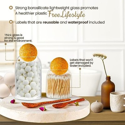 - 다기능 유리 보관 용기 - 욕실과 세탁실 외에도 코르크 뚜껑이 달린 이 유리 보관 용기는 집의 다른 부분에서 우아한 보관 솔루션 역할을 할 수도 있습니다. 생활 공간에 스타일을 더하면서 공예품, 사무실 책상용 밀폐 유리 보관함, 주방 용품을 정리하는 데 사용하세요.