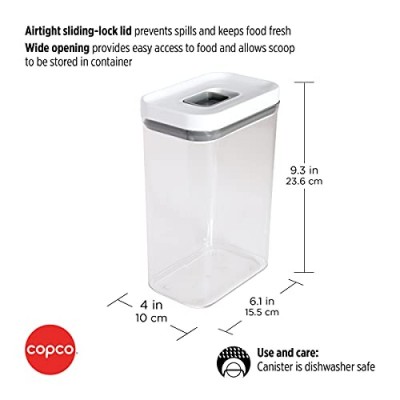 제품의 권장 용도: 신선한 특징: 기밀성, 누출 방지 유닛 수: 1.0 카운트 제품 크기: 가로 6.14인치 x 세로 4.09인치 x 높이 9.33인치 무게: 13.9온스 제조사: Lifetime Brands Inc. 원산지: 중국 아이템 모델번호: 5275430 브랜드: Copco 색상: 분명한 소재: 플라스틱 용량: 2.74쿼트 |