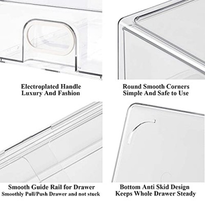 - 공간을 절약하기 위해 쌓을 수 있음: 이 냉장고 보관함에는 풀아웃 서랍이 있어 필요한 것을 쉽게 꺼낼 수 있습니다. 예쁜 내장 손잡이가 보관 상자를 매우 다르게 만듭니다. 벽이 투명해 시야가 선명해지기 때문에 뚜껑을 열지 않고도 필요한 물건을 쉽게 찾을 수 있습니다. 저장 공간을 최대화하기 위해 쌓을 수 있습니다. 개별적으로 또는 함께 사용하여 맞춤형 스토리지 시스템을 갖습니다. 물건을 정리하고 먼지가 없도록 보관하세요. 4개의 미끄럼 방지 스티커가 서랍 전체를 안정적으로 유지합니다.