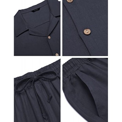 COOFANDY 남성 2피스 리넨 복장 비치 버튼 다운 셔츠 캐주얼 루즈 팬츠 세트