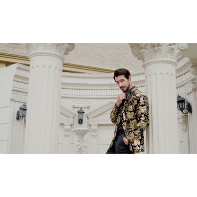 • 재킷 특징: 핫 스탬핑 인쇄 공정을 갖춘 싱글 브레스트 노치 라펠 센터 벤트 버튼 클로저 블레이저