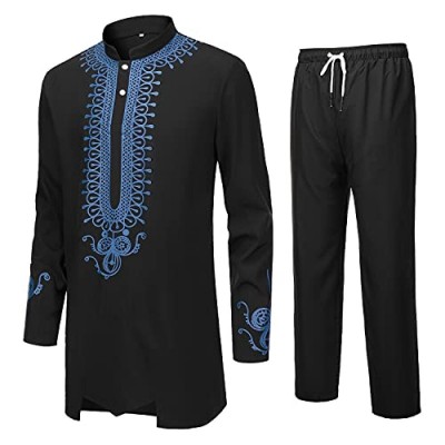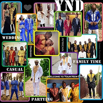 YND 남성용 2피스 아프리카 대시키 셔츠 및 바지 세트, 골드 프린트 의상 요약정보 및 구매
