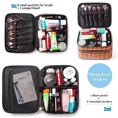 - 초대형 용량: 메이크업 백은 2개의 레이어(11.6"L*8.8"W*7.6"H 인치)로 디자인되었으며 첫 번째 레이어는 3.2"H이고 두 번째 레이어는 4.4"H로 길고 넓어졌습니다. 대형 화장품 가방에는 모든 여성용 화장품과 세면도구, 고데기까지 보관할 수 있으며, 2층에는 조절 가능한 패딩 칸막이가 있어 화장품 분류 보관함을 쉽게 찾고 관리할 수 있습니다.