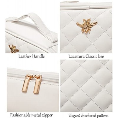 LACATTURA 여성용 여행용 메이크업 가방, 비건 가죽 화장품 가방, 방수 세면도구 정리함, 조절 가능한 칸막이와 브러시 홀더가 있는 메이크업 가방, 여성용 휴대용 미용 보관 가방, 흰색상품설명 - 프리미엄 소재: 고품질 PU 가죽과 안감-나일론으로 제작되었으며, 부드럽고 패딩 처리된 멋진 안감으로 충격과 긁힘을 방지하는 탁월한 보호 기능을 제공합니다.
