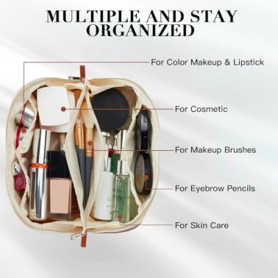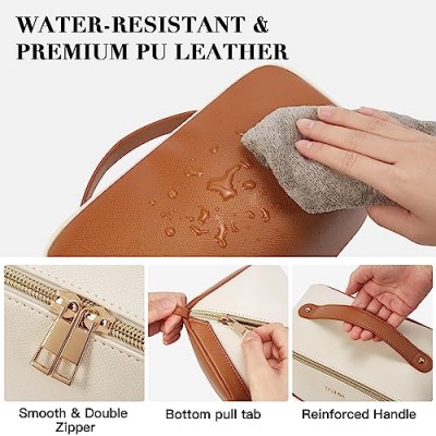 Telena 메이크업 가방 대용량 여행 화장품 가방 손잡이와 분배기가 있는 여성용 휴대용 PU 가죽 방수 메이크업 정리 가방 브라운과 오픈 플랫 베이지상품설명 - 대용량 - 화장품 가방의 크기는 9.84x4.72x4.72인치이며, 메인 수납공간 2개, 작은 물건을 보관할 수 있는 측면에 작은 신축성 있는 포켓 2개, 반대편에 있는 대형 신축성 있는 포켓, 내부에 고정된 지퍼 포켓이 있습니다. 가운데. 다기능 디자인의 화장품 가방은 모든 메이크업/스킨케어/화장품 요구 사항을 충족합니다. 일상적인 사용이나 여행에 적합한 초대형 용량