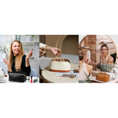 - 대형 입구 및 하단 탭 스트랩 디자인 - 당사의 여행용 메이크업 가방은 품목에 빠르게 접근할 수 있도록 대형 입구 평면 디자인을 갖추고 있습니다. 하단 측면 탭은 지퍼가 원활하게 작동하도록 설계되었습니다.