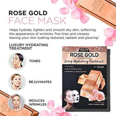 제품 크기: 5 x 1.5 x 8인치; 6.38온스 아이템 모델번호: SG_B07CVLT8GL_US 제조사: Just Solutions! 원산지: 대한민국 브랜드: Azure Cosmetics 상품 양식: 시트 제품 혜택: 깊은 수분 공급을 돕고 건조한 피부를 조여주고 부드럽게 하며 주름, 잔주름 및 주름을 부드럽게 하여 피부를 회복되고 빛나고 빛나는 것처럼 보이게 합니다. 향기: 로즈 골드 럭셔리 하이드레이팅 |
