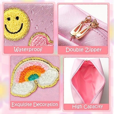 LieToi 프레피 패치 소형 세면도구 가방, 스마일 레인보우 하트 PU 가죽 휴대용 방수 메이크업 화장품 가방 매일 사용 보관 지갑 여행 주최자 여성용 가방(라이트 핑크)상품설명 - 귀여운 디자인: 라이트 핑크 컬러의 프레피 패치 테마의 세면도구 가방입니다. 스마일, 레인보우, 하트 세 가지 트렌디하고 사랑스러운 패턴이 있습니다. 흥미로운 패턴과 멋진 색상은 기분을 좋게 만들고 개성을 돋보이게 할 수 있습니다.